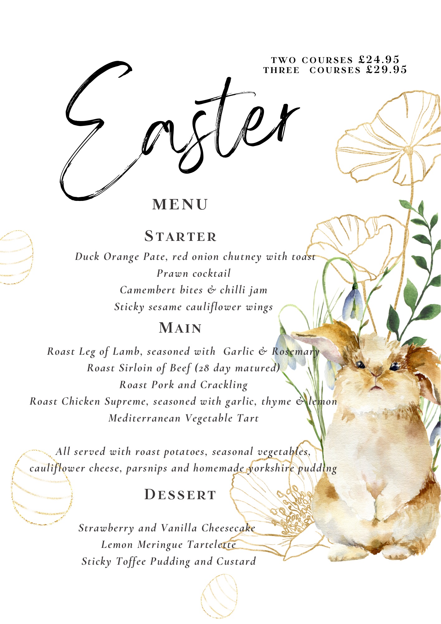 This Easter enjoy a delicious 2 or 3 course lunch crafted with fresh, locally sourced ingredients π£π½οΈ Perfect for family gatherings or a relaxed festive treat.